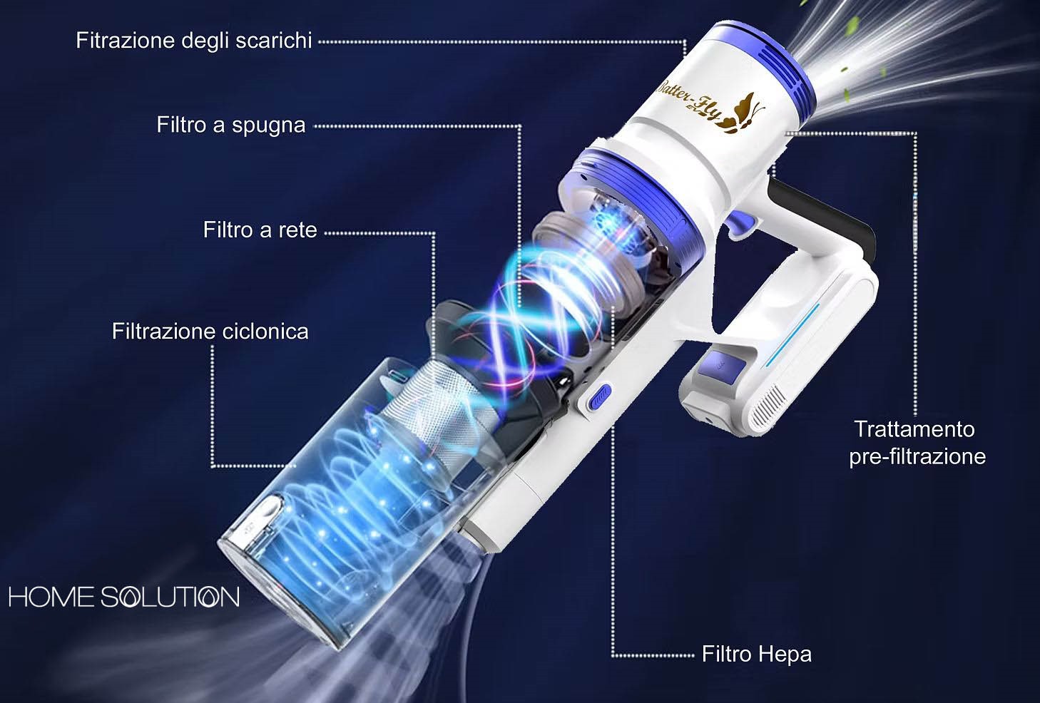 Cattura il 99.99% di particelle espulse. Offre un'esperienza di pulizia estremamente elevata.